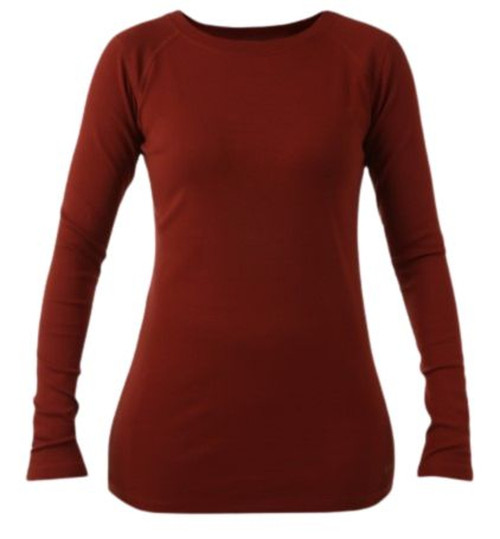 Noble Outfitters Womens Brick Red Tug-Free Crew Long Sleeve Shirt